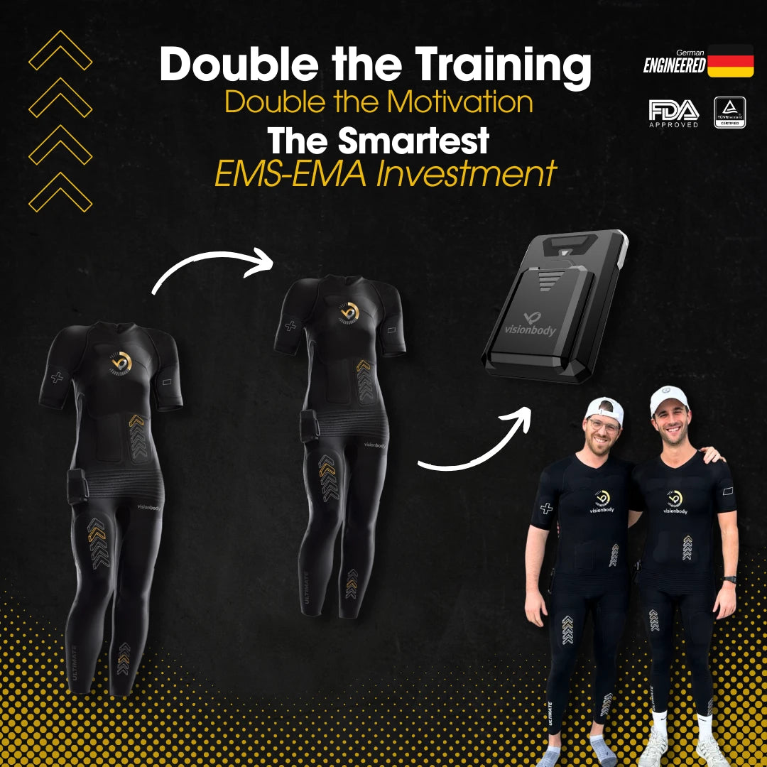 (2 PowerSuits & 2 PowerBoxes): With the DUO function, you can train together with one Visionbody Box and two suits, with each suit having a personal account.
